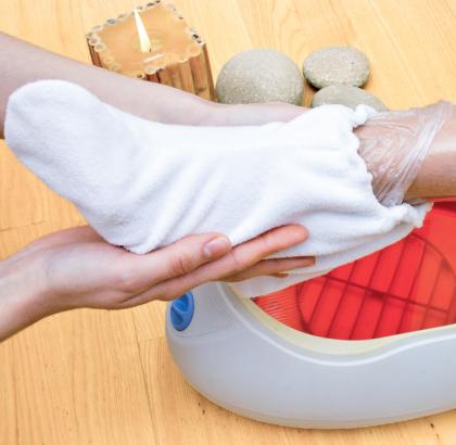 Ein Paraffinbad fördert die Durchblutung, lockert steife Fuß,- und Zehengelenke und ist schmerzlindernd.